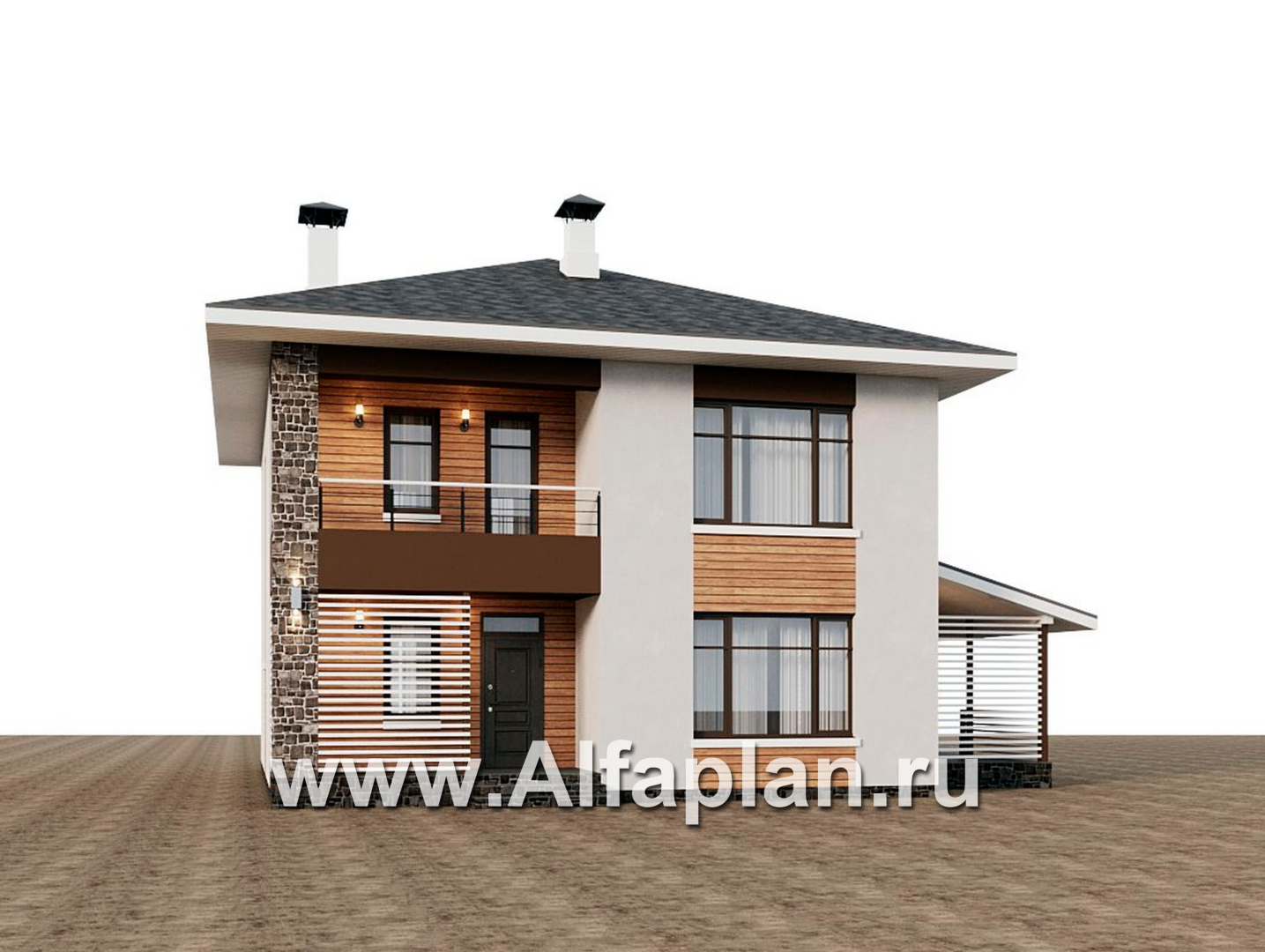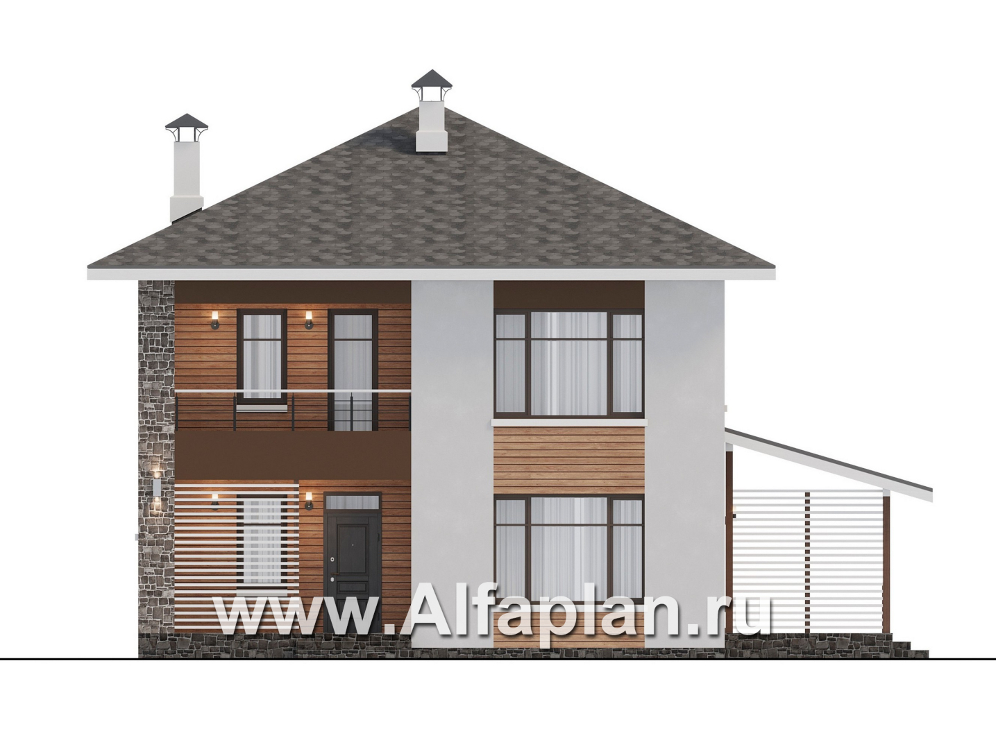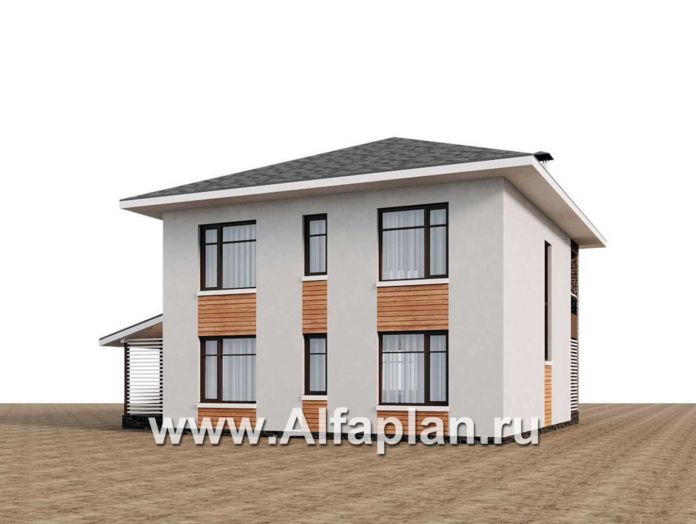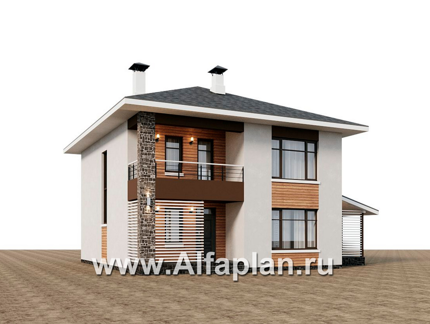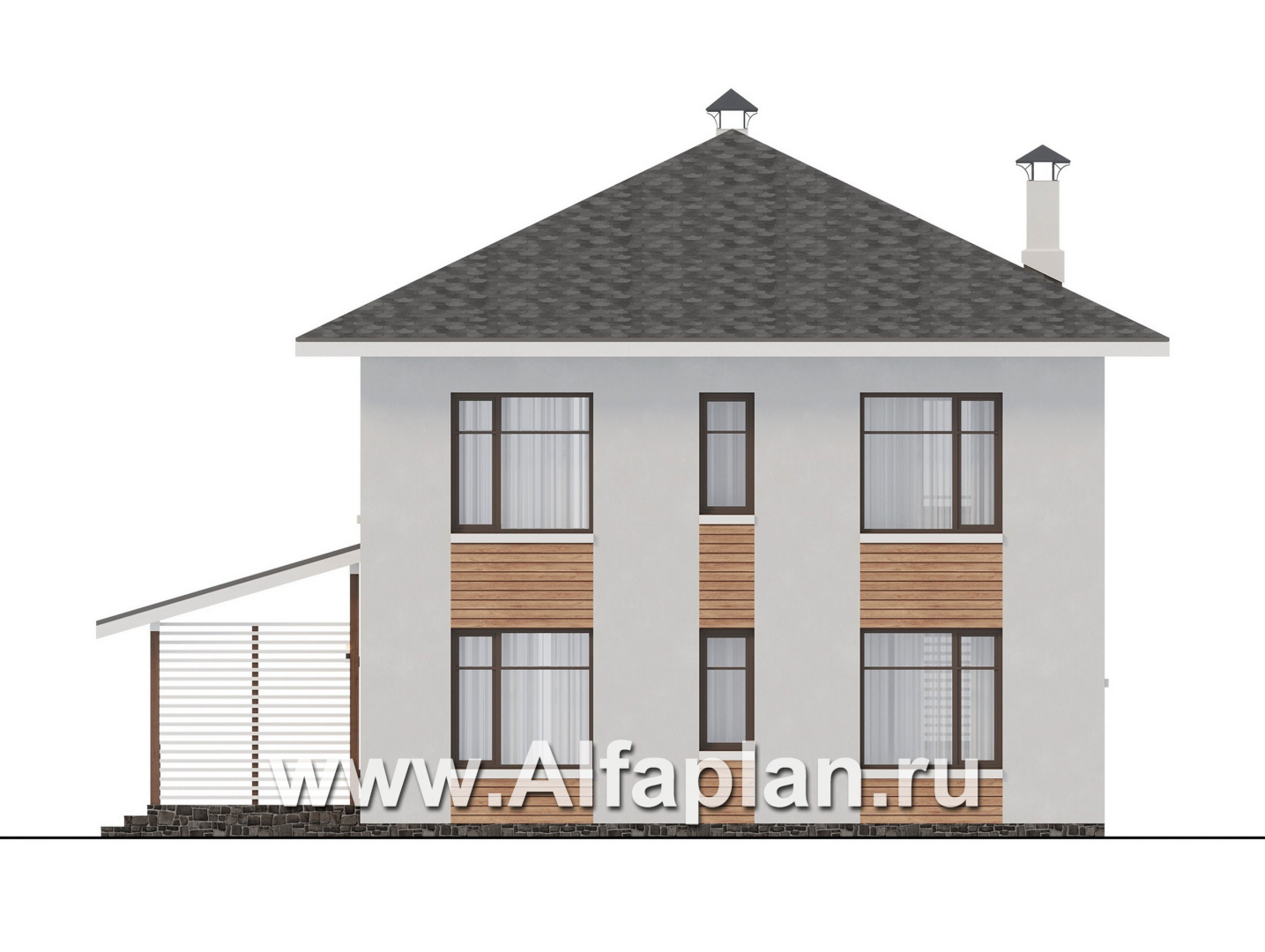 946A-S «Ильмень» - современный проект двухэтажного дома из кирпичей, с террасой на боковом фасаде