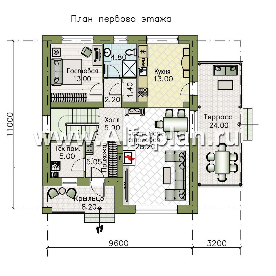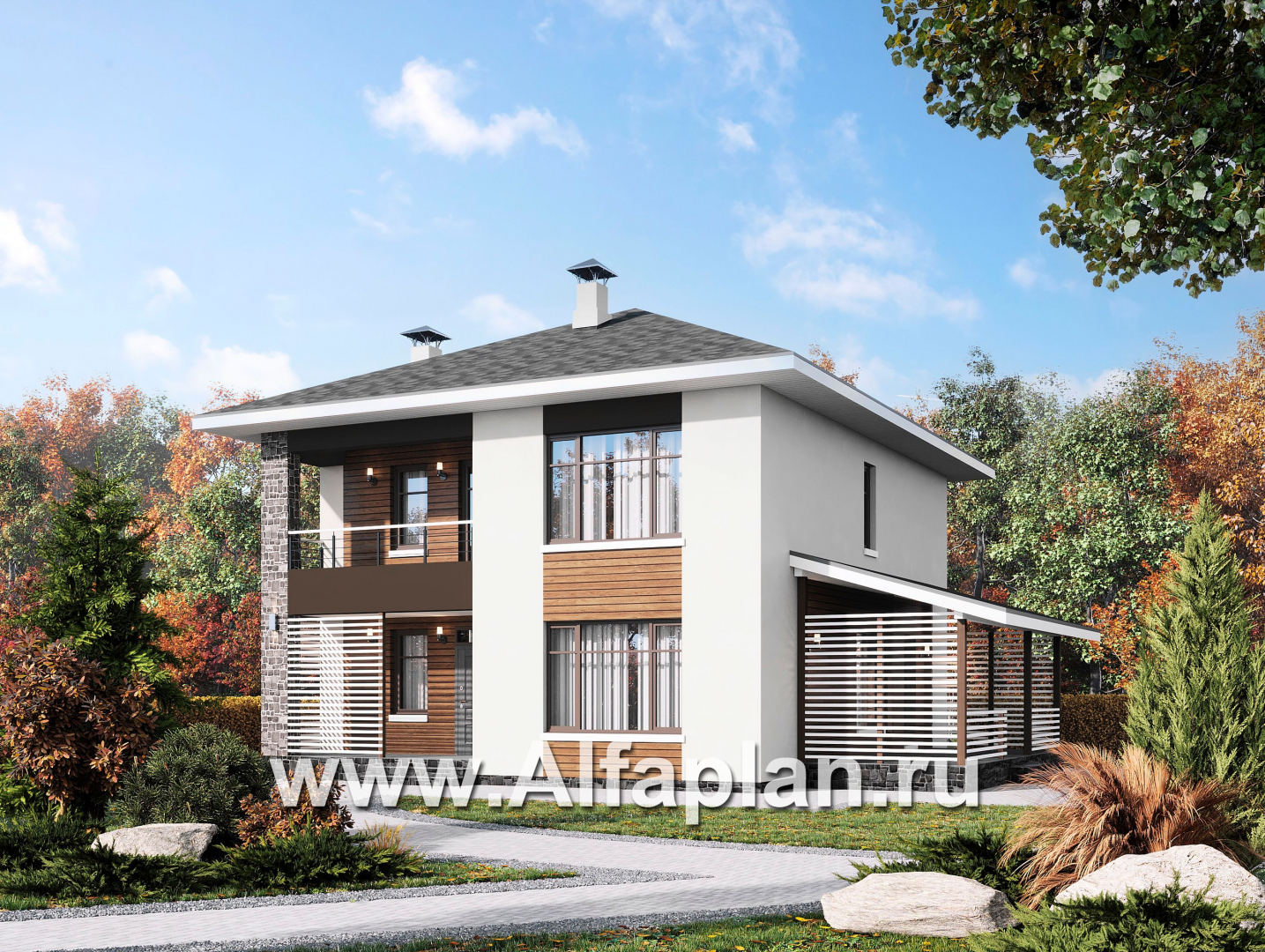 «Ильмень» - современный проект двухэтажного дома из кирпичей, с террасой на боковом фасаде