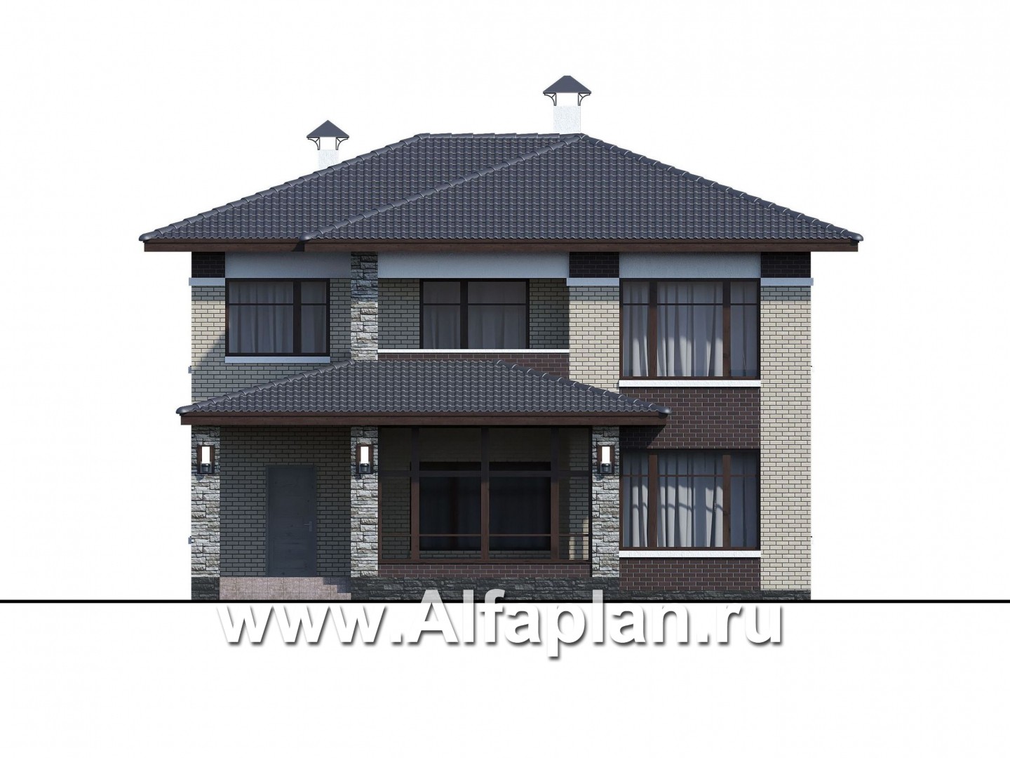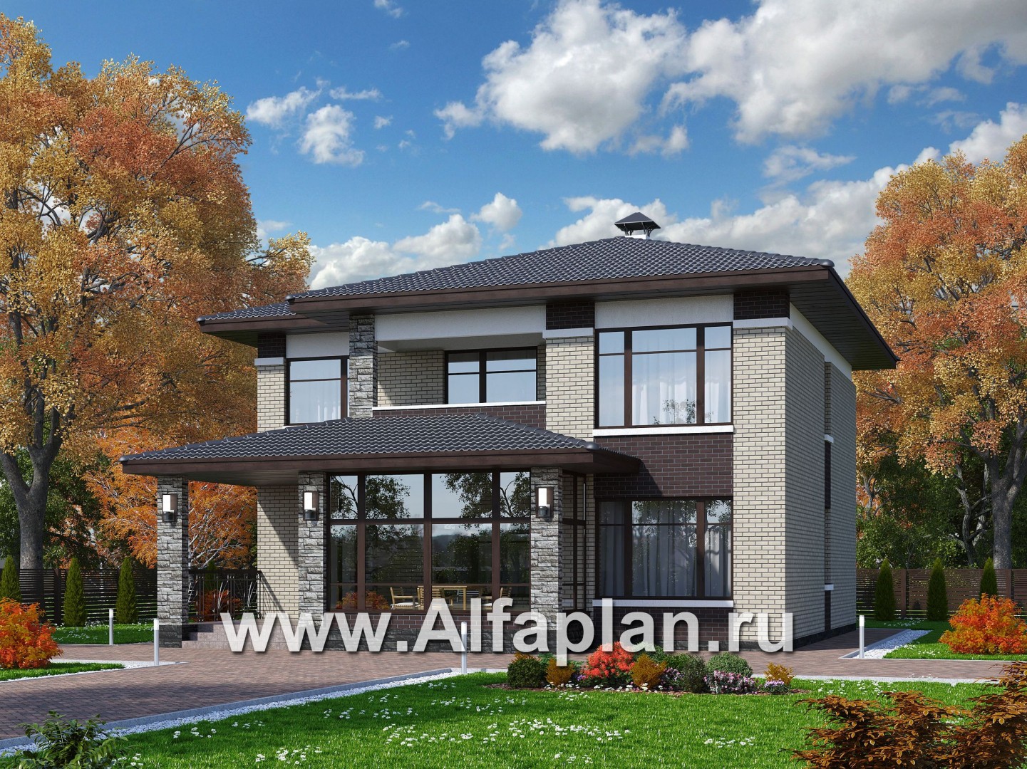 «Маяк» - проект двухэтажного дома из газобетона, с террасой, в стиле Райта
