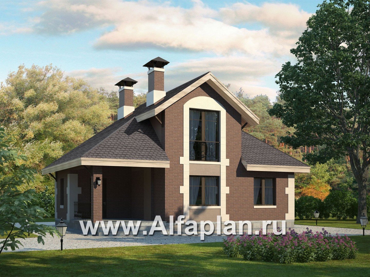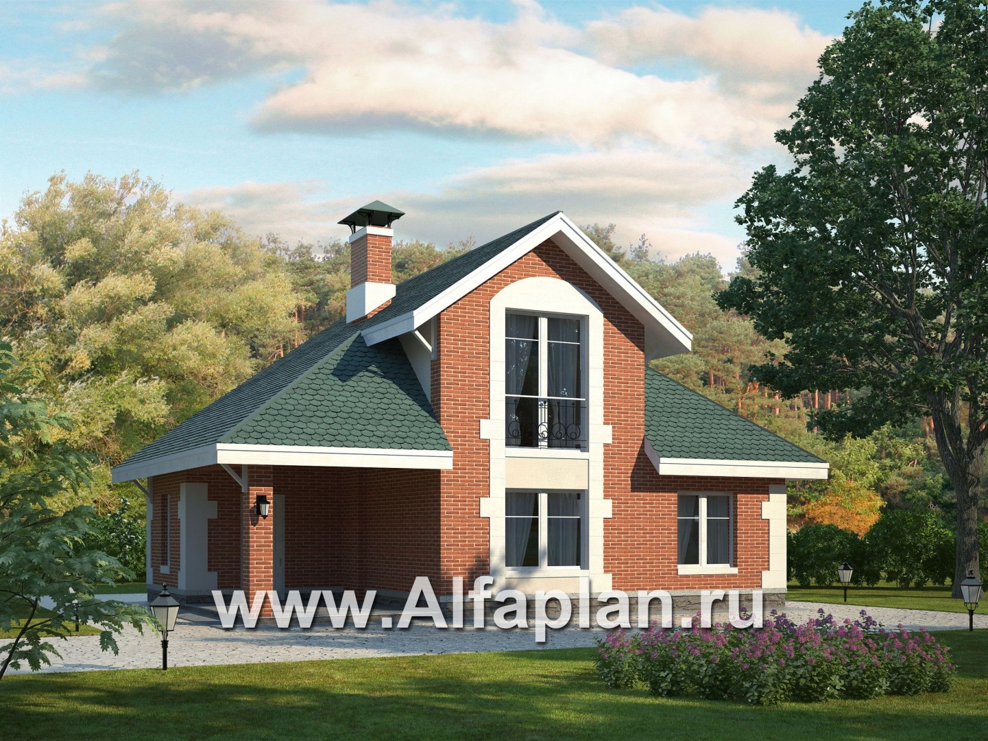 Дом для отдыха или комфортабельная баня отлично дополнит вашу усадьбу. То что касается архитектурного решения, по стилю дом  прекрасно сочетается с проектами нашей студии, например такими домами как 38А, 78А, да и многими другими, выполненными в стиле "Петровсое барокко".  В этом здании под  зону отдыха используется первый этаж, в мансарде находится  жилая студия. На площади немногом менее 30 м2  удалось разместить жилое пространство со спальной  и кухонной зонами, небольшую душевую и прихожую с гардеробом. Это помещение помещение можно использвать для охраны или  как небольшую гостевую квартиру. Предваряет вход в дом крытая терраса.
