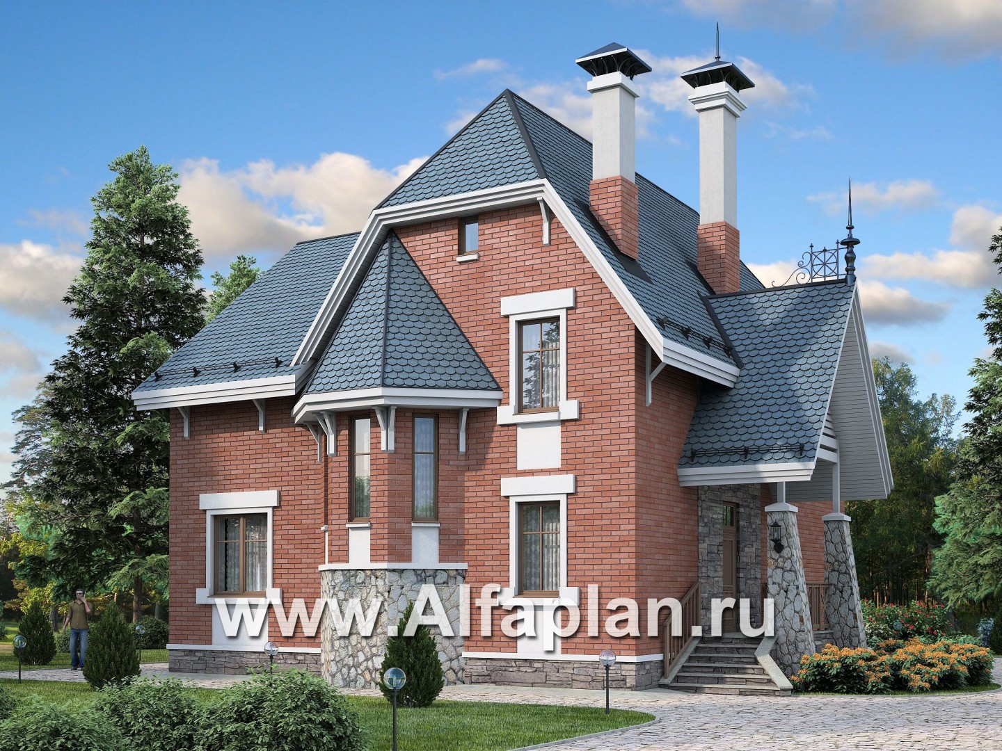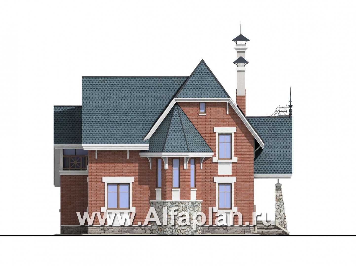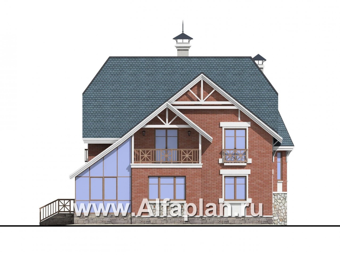 • Зона цоколя декорируется искусственным камнем.