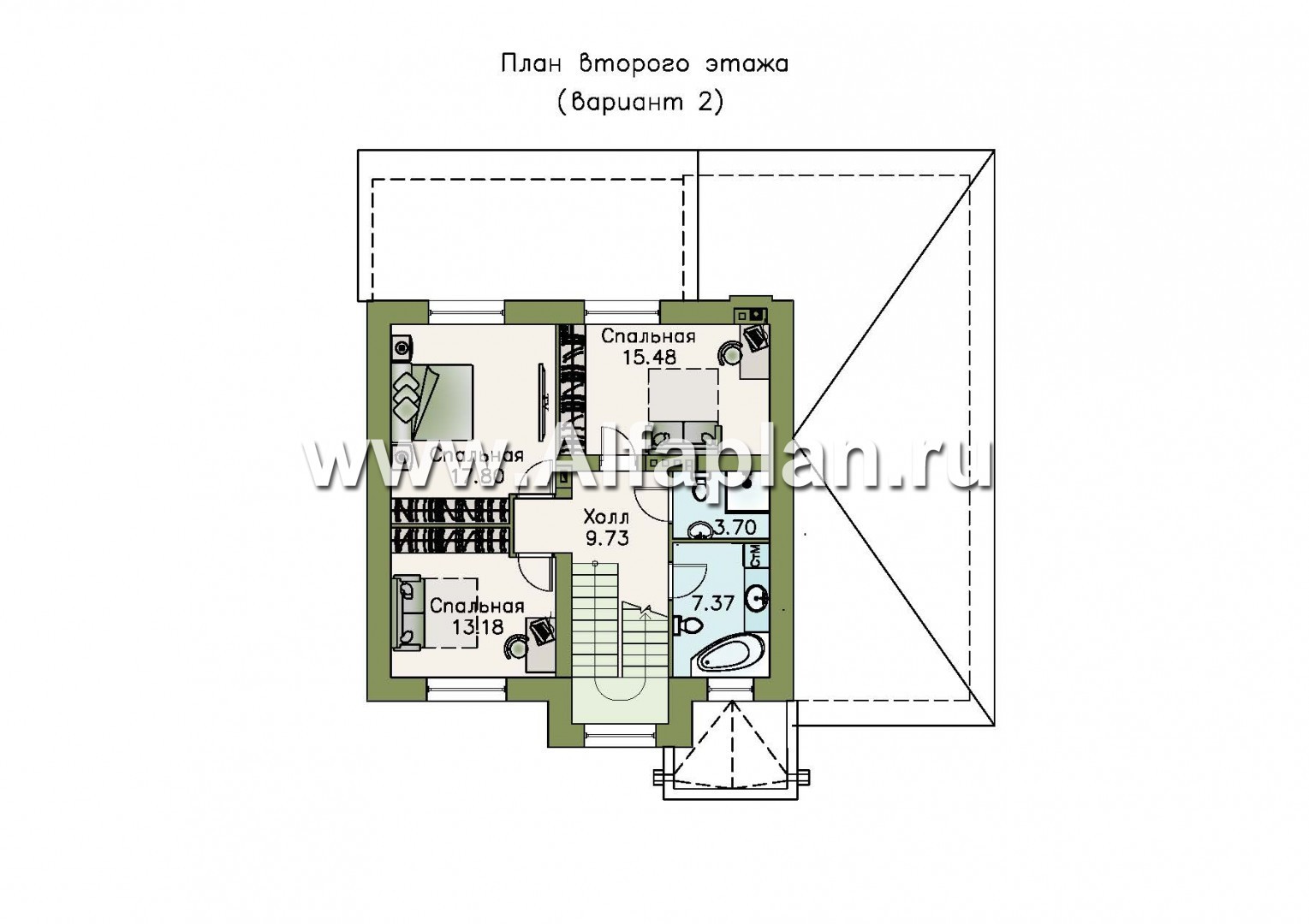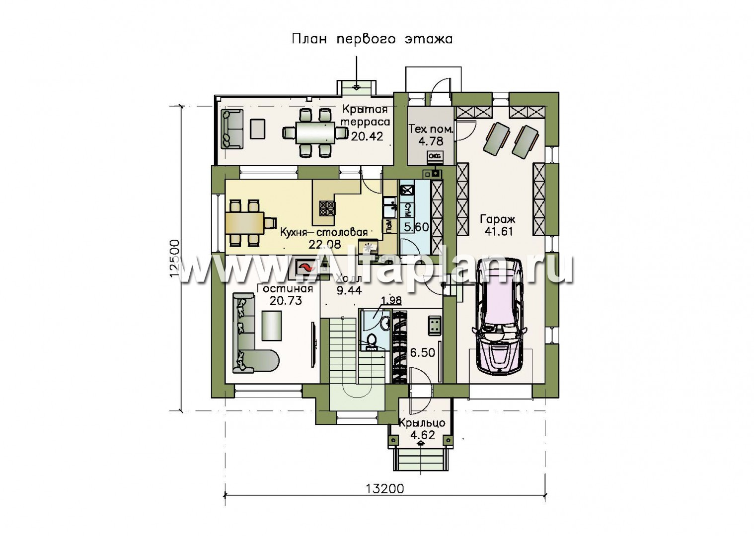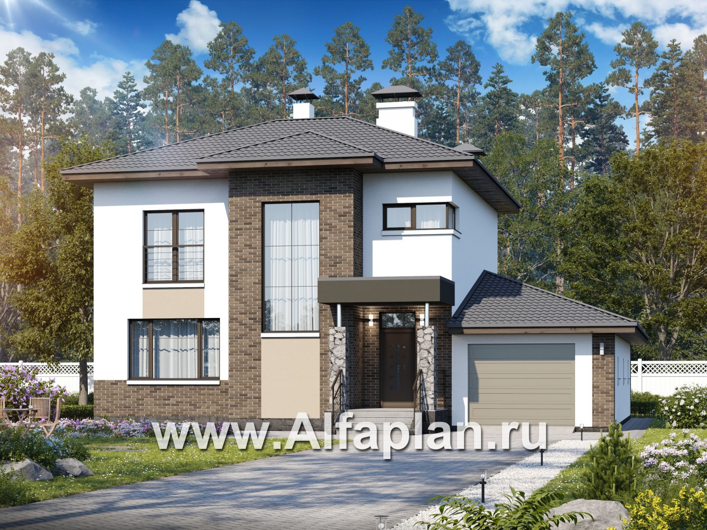 «Приоритет» - проект двухэтажного дома из газобетона, с террасой, 3 спальни, сауна на 2 эт, с гаражом на 1 авто
