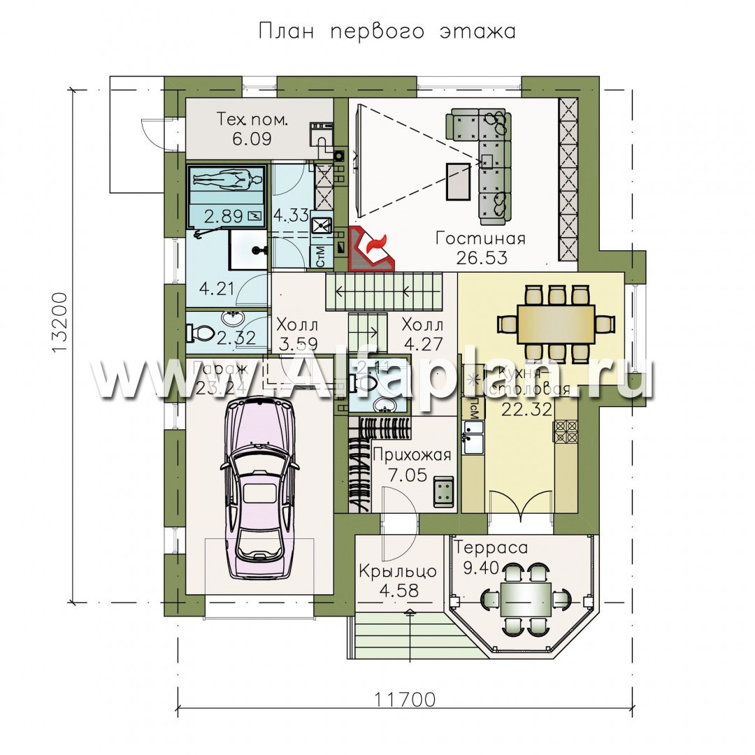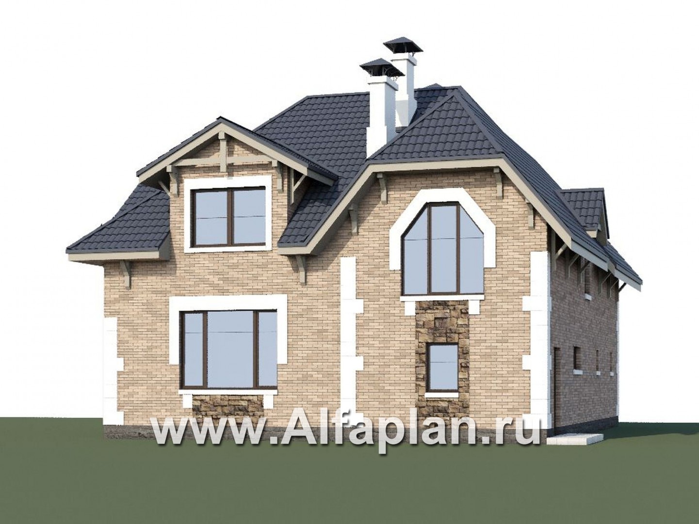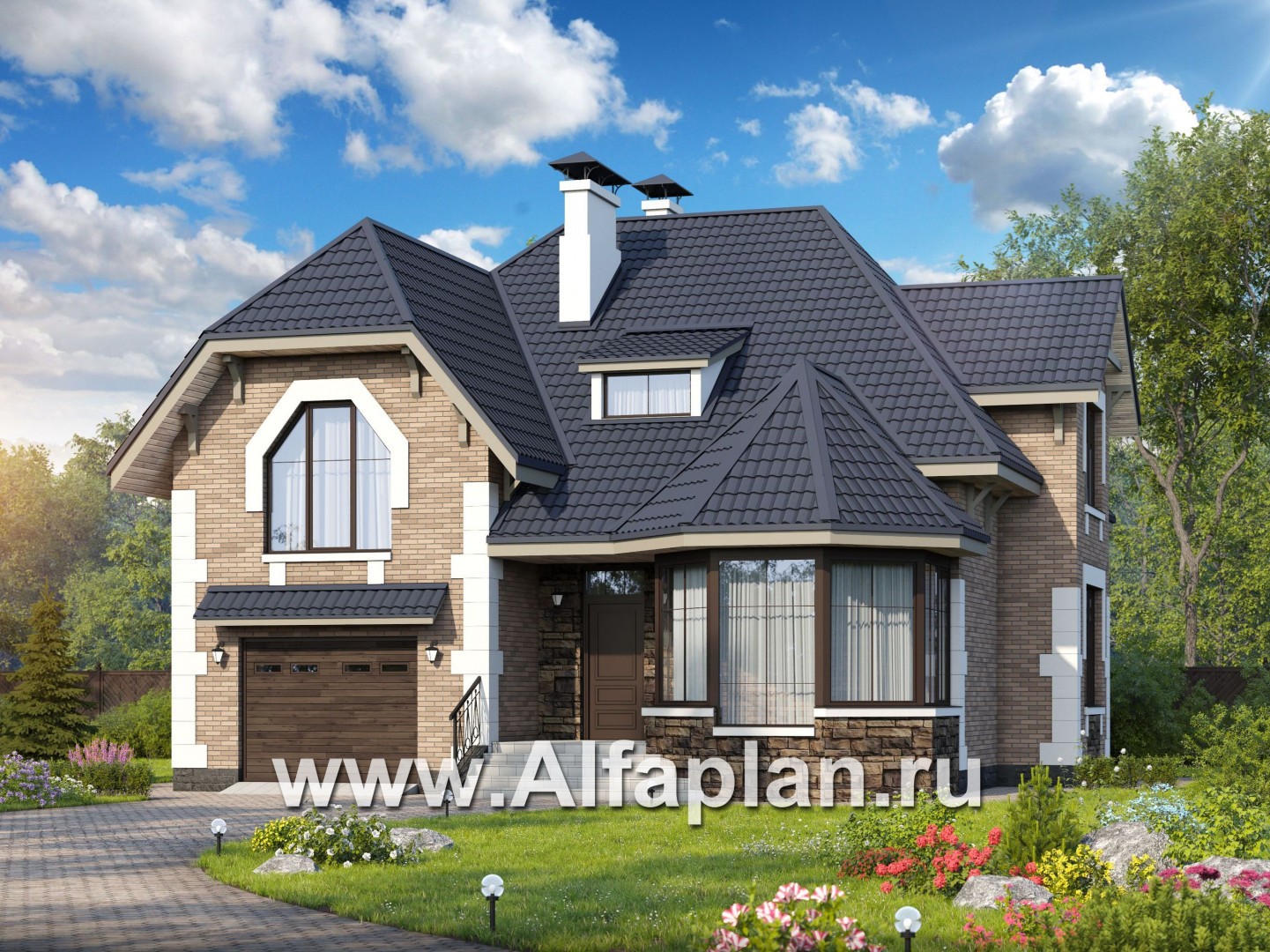 332A-S «Корона» - проект дома с мансардой, с эркером и сауной, с гаражом на 1 авто