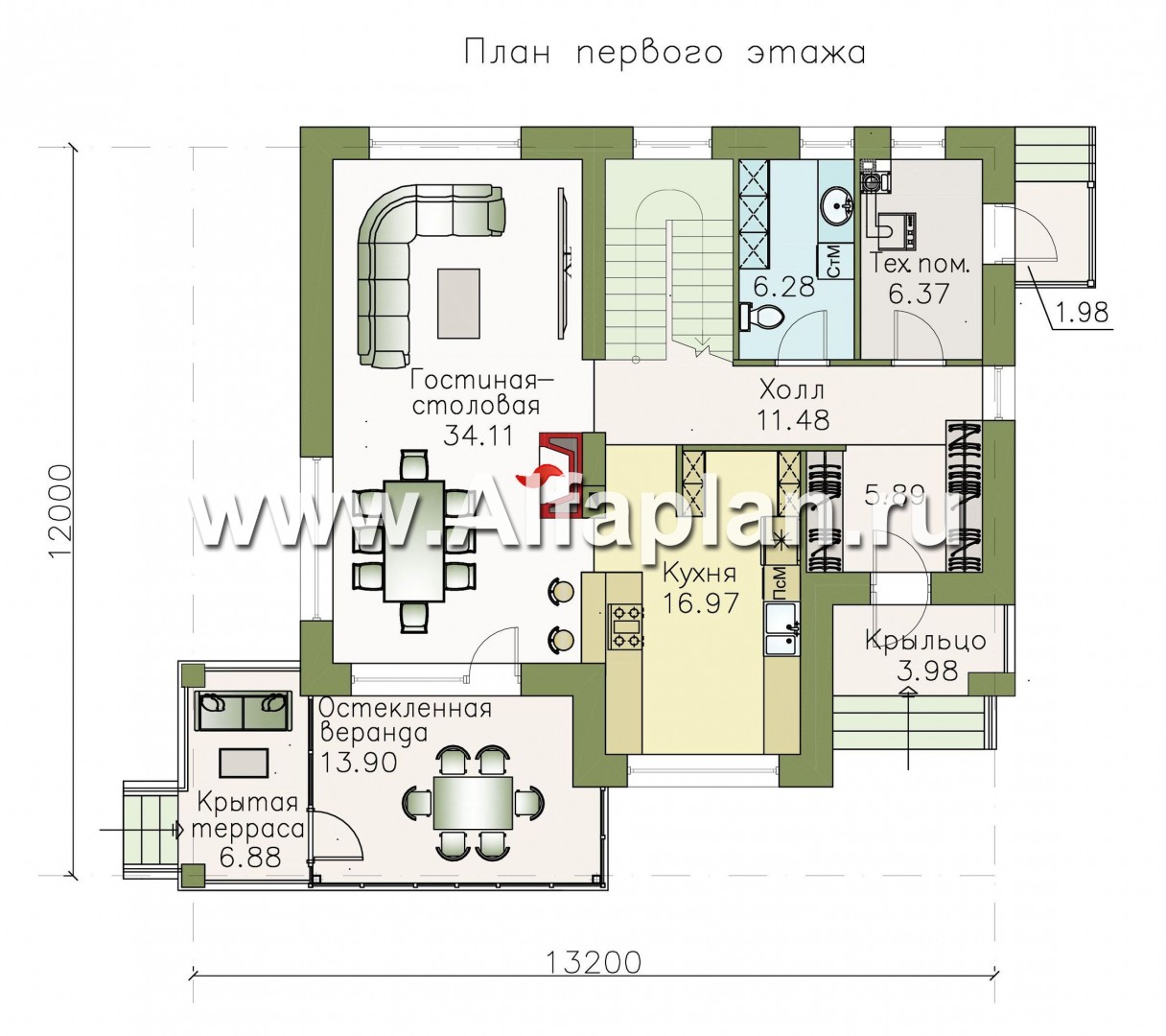 В этом проекте предусмотрено помещение постирочной на 1-ом этаже - площадью 6.28 м2.( смежное с котельной). Под гардеробную можно использовать душевую на 2-ом этаже или кабинет там-же. В первом случае на 2-ом этаже останется одна ванная комната, во-втором - не будет кабинета.