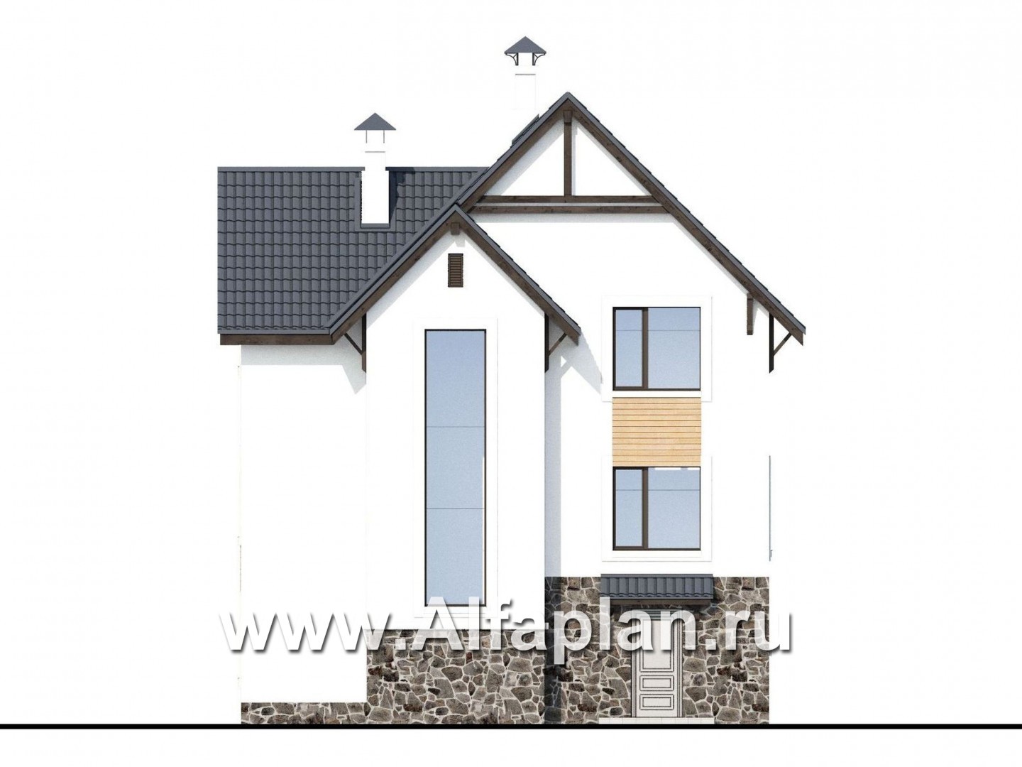 362A-S «Фея снов» - проект двухэтажного дома с мансардой, с гаражом на 2 авто в цоколе, с террасой и с лоджией, в современном стиле