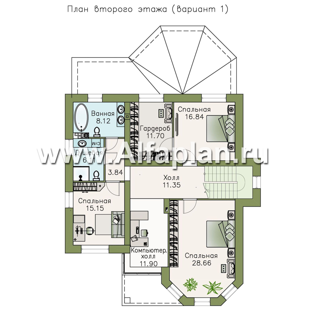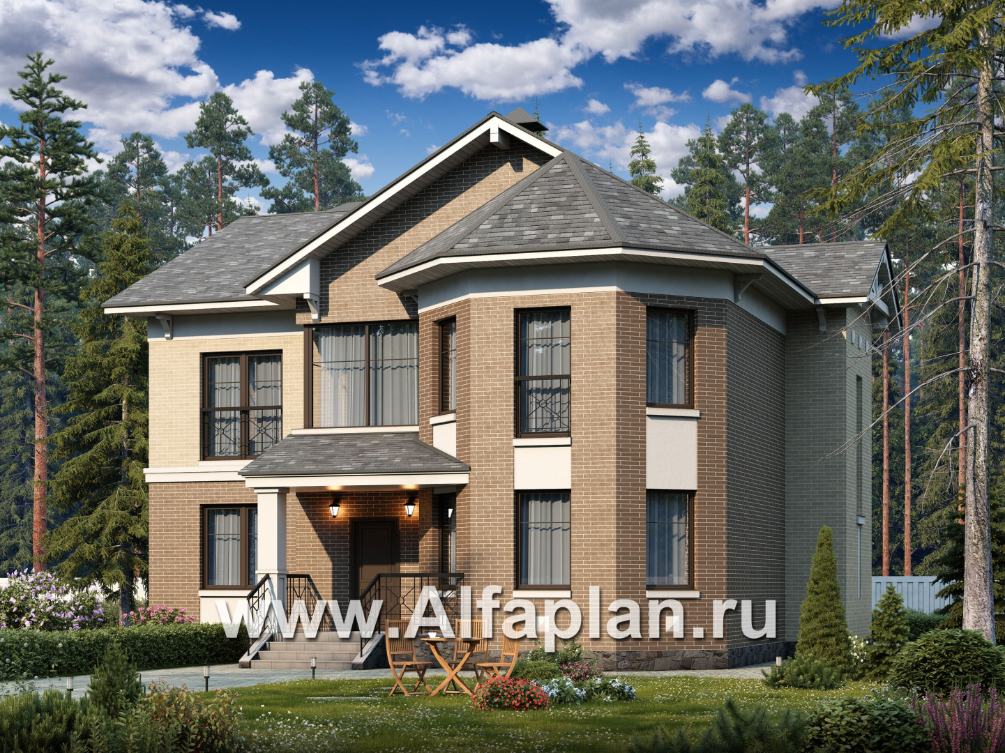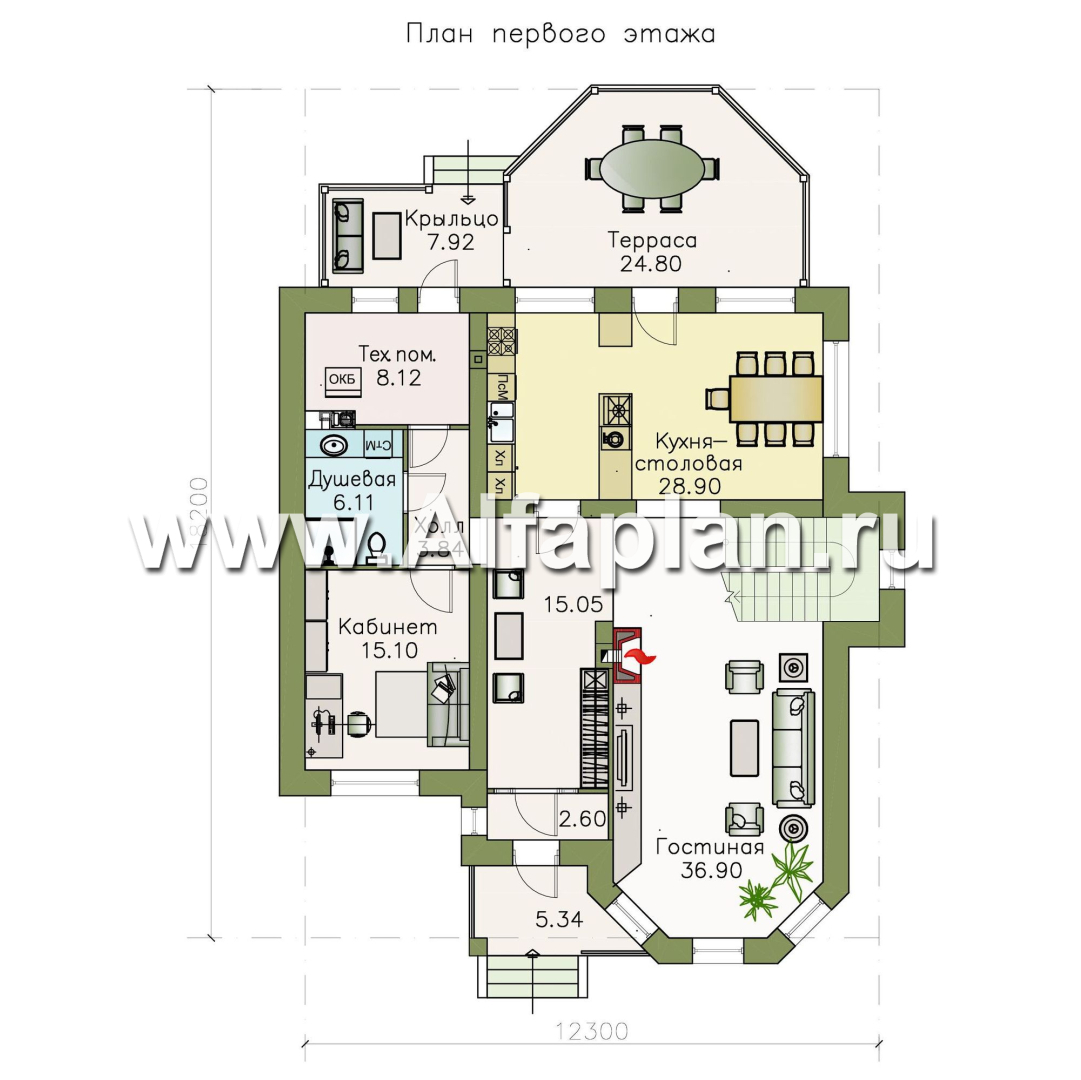 504A «Clever» - проект двухэтажного дома, планировка с эркером и кабинетом на 1 эт, с террасой
