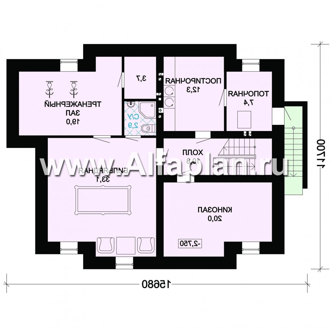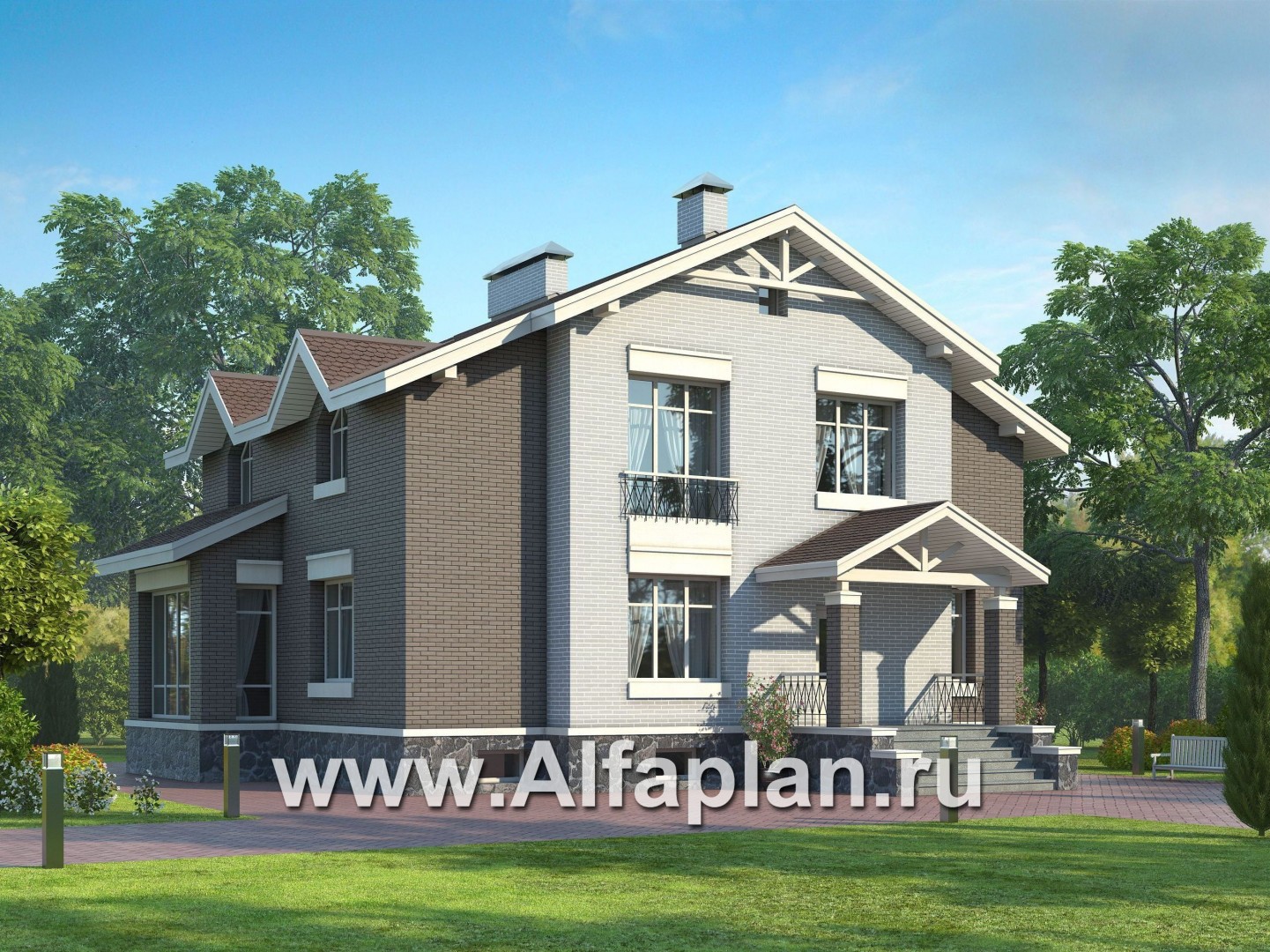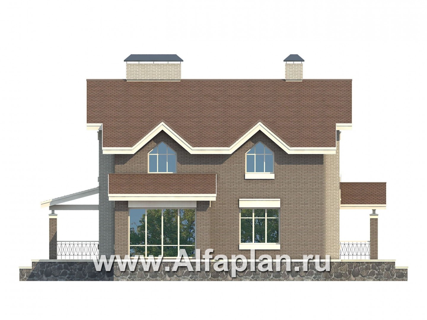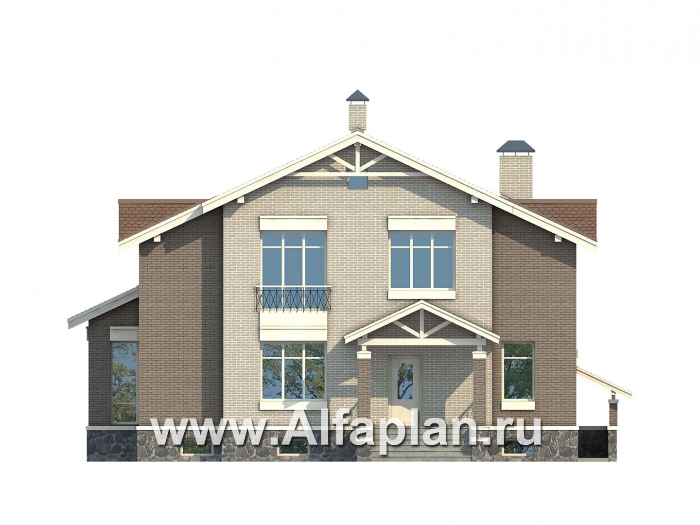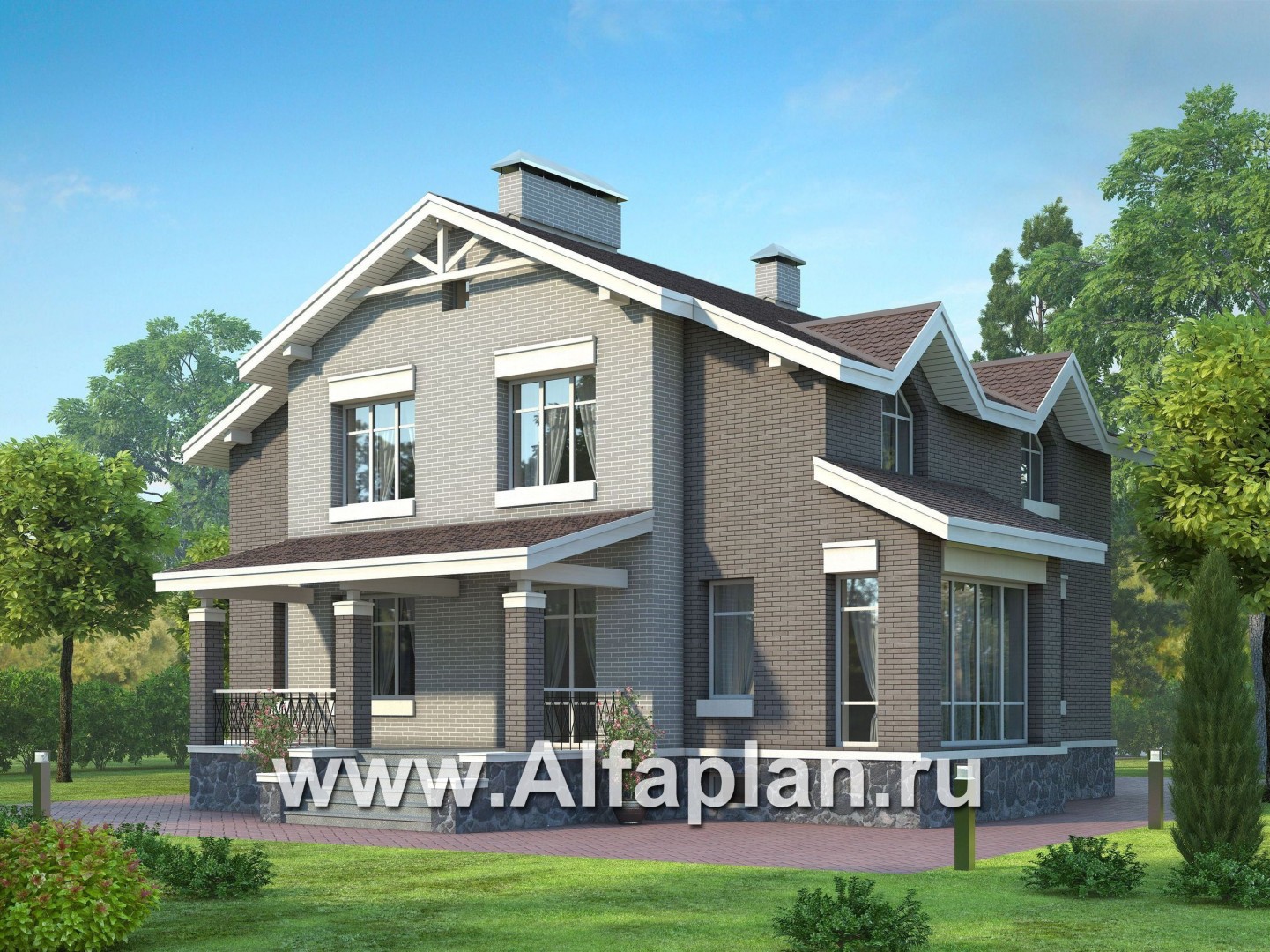 Проект двухэтажного дома из кирпича, с биллиардной и спорзалом в цокольном этаже